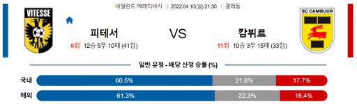 네덜란드 에레디비시 4월 10일 21:30 SBV 비테세아른험 : SC 캄뷔르