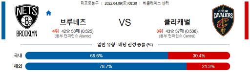 4월 9일 08:30 NBA분석 브루클린 : 클리블랜드