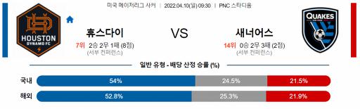 미국 MLS 4월 10일 09:30 휴스턴 디나모 : 산호세 어스퀘이크스