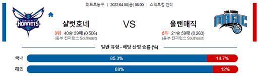 열람중 4월 8일 08:00 NBA분석 샬럿 : 올랜도 2022.04.07 458