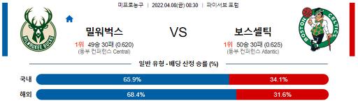 4월 8일 08:30 NBA분석 밀워키 : 보스턴