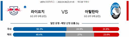 UEFA 유로파리그 4월 8일 01:45 RB 라이프치히 : 아탈란타 BC