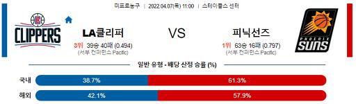 4월 7일 11:00 NBA분석 LA클리퍼스 : 피닉스