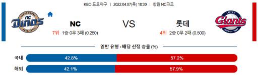4월 7일 18:30 KBO NC : 롯데