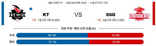 열람중 4월 7일 18:30 KBO KT : SSG랜더스 2022.04.07 464