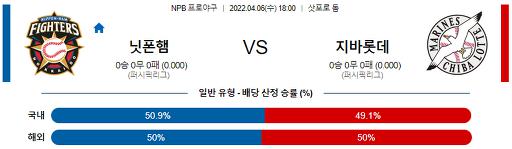 열람중 4월 6일 18:00 NPB 니혼햄 : 치바롯데 2022.04.06 413