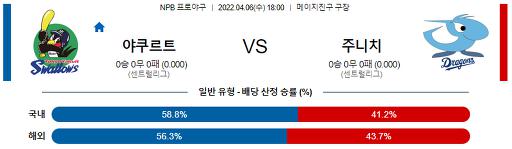 4월 6일 18:00 NPB 야쿠르트 : 주니치