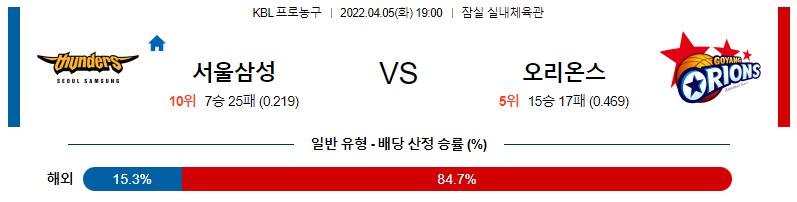 [KBL] 4월 5일 서울 삼성 썬더스 vs 고양 오리온스