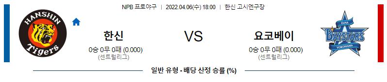 로메로 투수는 지난시즌 완봉승 포함 4경기 3승, 0.66, 27.1이닝 6실점(2자책)으로 강점을 보였던 주니치를 상대로 강점을 이어가는 모습을 보였지만 지난시즌 원정에서 투구내용에 기복이 있었고 한신 상대로는 2경기 모두 홈에서 등판해서 5이닝 4실점 패배와 8이닝 3실점 승리 기록이 있었다. 한신 승리 가능성을 추천 한다.