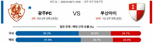 K리그2 4월 6일 19:00 광주 FC : 부산 아이파크