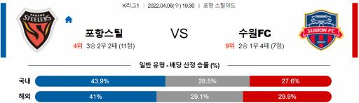 K리그1 4월 6일 19:30 포항 스틸러스 : 수원 FC