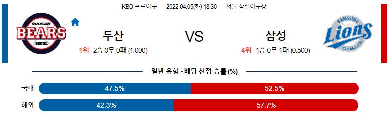 【KBO】 4월 5일 두산 베어스 vs 삼성 라이온즈