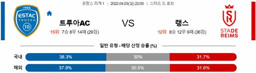 열람중 리그앙 4월 3일 22:00 트루아 AC : 스타드 드 랭스 2022.04.03 488