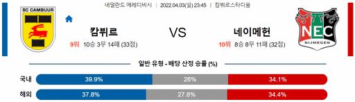 에레디비시 4월 3일 23:45 SC 캄뷔르 : NEC 네이메헌