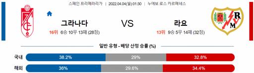 프리메라리가 4월 4일 01:30 그라나다 CF : 라요 바예카노