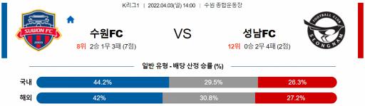 K리그1 4월 3일 14:00 수원 FC : 성남 FC
