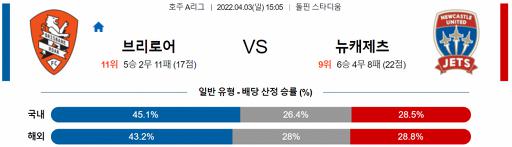 호주 1부 4월 3일 15:05 브리즈번 로어 FC : 뉴캐슬 제츠 FC