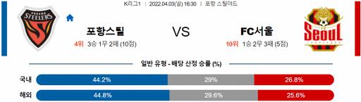 K리그1 4월 3일 16:30 포항 스틸러스 : FC 서울