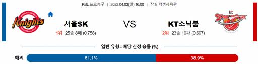 열람중 4월 3일 16:00 서울 SK : 수원 KT 2022.04.03 388