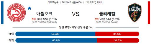 4월 1일 08:30 NBA분석 애틀랜타 : 클리블랜드