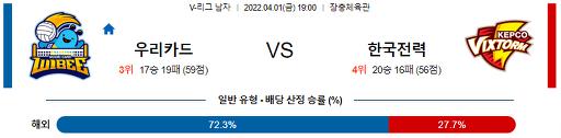 [KOVO 남자배구] 4월 1일 남자 우리카드 : 한국전력