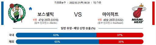 3월 31일 08:30 NBA분석 보스턴 : 마이애미