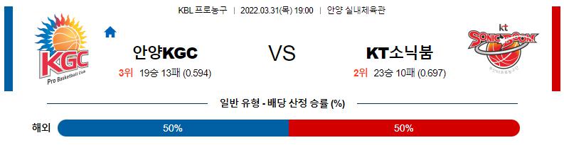 수원KT는 오세근의 위력을 반감 시킬수 있는 토종 빅맨의 물량을 보유하고 있고 전성현의 저격 수비가 가능한 정성우가 있다. 수원 KT 승리 가능성을 추천한다.