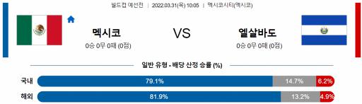 멕시코의 승리를 예측하겠다. 승리하면 본선 직행이 확정되는 상황에서 자력으로 진출할 기회를 놓치려 하지 않을 것이다. 다만 최근 멕시코의 공격력이 많이 하락한 모습이다. 전력 차가 많이 나기 때문에 승리를 거머쥘 가능성은 높으나, 다득점 가능성은 신중하게 생각하는 것이 좋다.