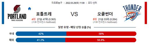 열람중 3월 29일 NBA분석 포틀랜드 : 오클라호마 2022.03.28 450