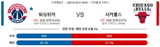 열람중 3월 30일 08:00 NBA분석 워싱턴 : 시카고 2022.03.30 451