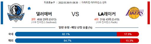 3월 30일 08:30 NBA분석 댈러스 : LA레이커스