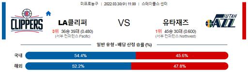 3월 30일 11:00 NBA분석 LA클리퍼스 : 유타