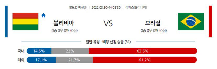 【월드컵예선】 3월 30일 볼리비아 vs 브라질● 볼리비아 (피파 랭킹 76위 / 팀 가치 : 14.33m 파운드)