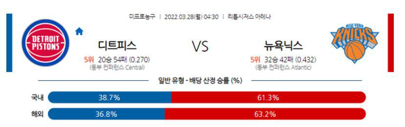 【NBA】 3월28일 디트로이트 vs 뉴욕닉스