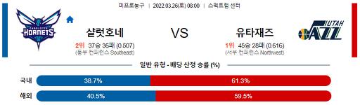 열람중 3월 26일 08:00 NBA분석 샬럿 : 유타 2022.03.25 527
