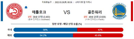 3월 26일 NBA분석 애틀랜타 : 골든스테이트