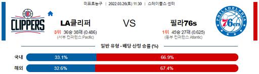3월 26일 11:30 NBA분석 LA클리퍼스 : 필라델피아