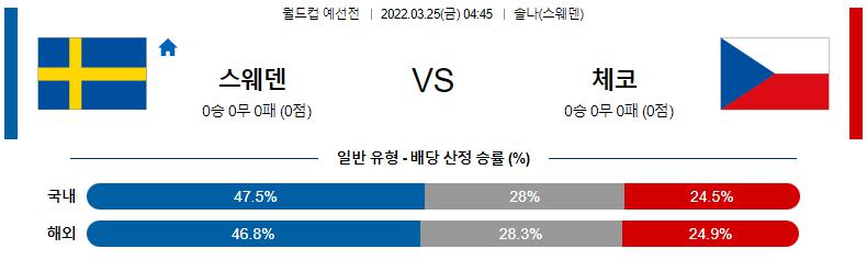 열람중 【월드컵예선】 3월 25일 스웨덴vs 체코 2022.03.24 539