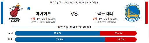 3월 24일 08:30 NBA분석 마이애미 : 골든스테이트