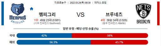 3월 24일 08:30 NBA분석 멤피스 : 브루클린