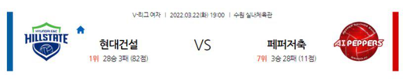 [KOVO 여자배구] 3월 22일 현대건설 vs 페퍼저축은행