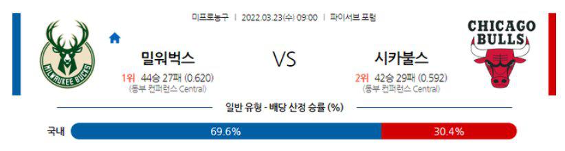 [NBA] 3월23일 밀워키 vs 시카고불스