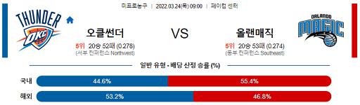 3월 24일 09:00 NBA분석 오클라호마시티 : 올랜도
