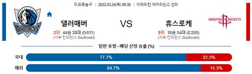 3월 24일 09:30 NBA분석 댈러스 : 휴스턴