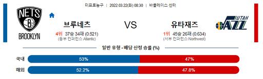 3월 22일 NBA분석 브루클린 : 유타