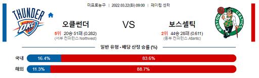 열람중 3월 22일 NBA분석 오클라호마시티 : 보스턴 2022.03.21 475