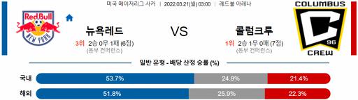 메이저리그사커 3월 21일 03:00 뉴욕 레드불스 : 콜럼버스 크루