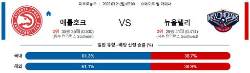 3월 21일 07:00 NBA분석 애틀랜타 : 뉴올리언스