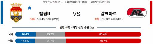 에레디비시 3월 21일 04:00 빌럼 II : AZ 알크마르