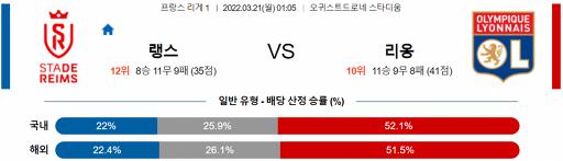리그앙 3월 21일 01:05 스타드 드 랭스 : 올랭피크 리옹